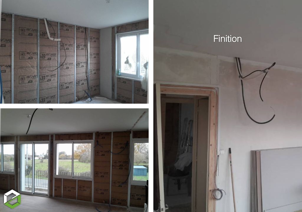Nous sommes intervenus sur la commune de Terce pour la mise en place d’un doublage isolé, dans le cadre d’un projet d’amélioration thermique de l’habitation. Ce type d’intervention permet d’augmenter considérablement le confort intérieur tout en réduisant les dépenses énergétiques.