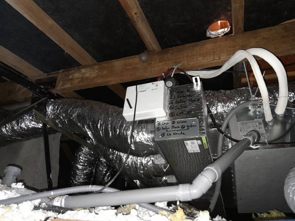 Les travaux ont consisté à la mise en place de l’unité intérieure gainable, à l’installation complète du réseau aéraulique et au raccordement de l’unité extérieure Daikin. Chaque élément a été soigneusement posé et isolé afin de limiter les pertes thermiques et les nuisances sonores.