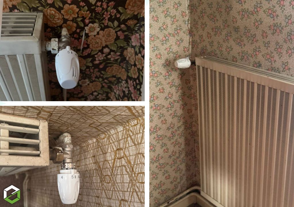 L’intervention a consisté à installer des têtes thermostatiques sur les radiateurs existants du logement. Ces dispositifs permettent de réguler automatiquement le débit d’eau chaude circulant dans chaque radiateur en fonction de la température souhaitée.